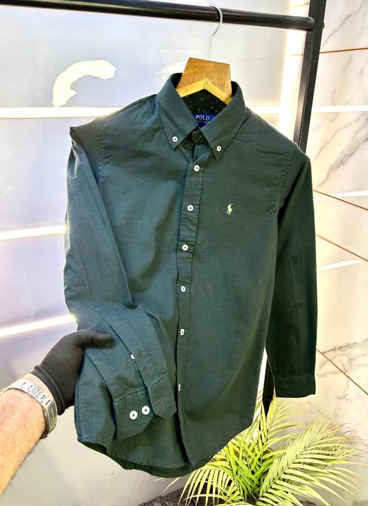 Ralph_Lauren Polo Dark Green Oxford Lycra Embroidery Logo Premium Shirt F2841-DGR